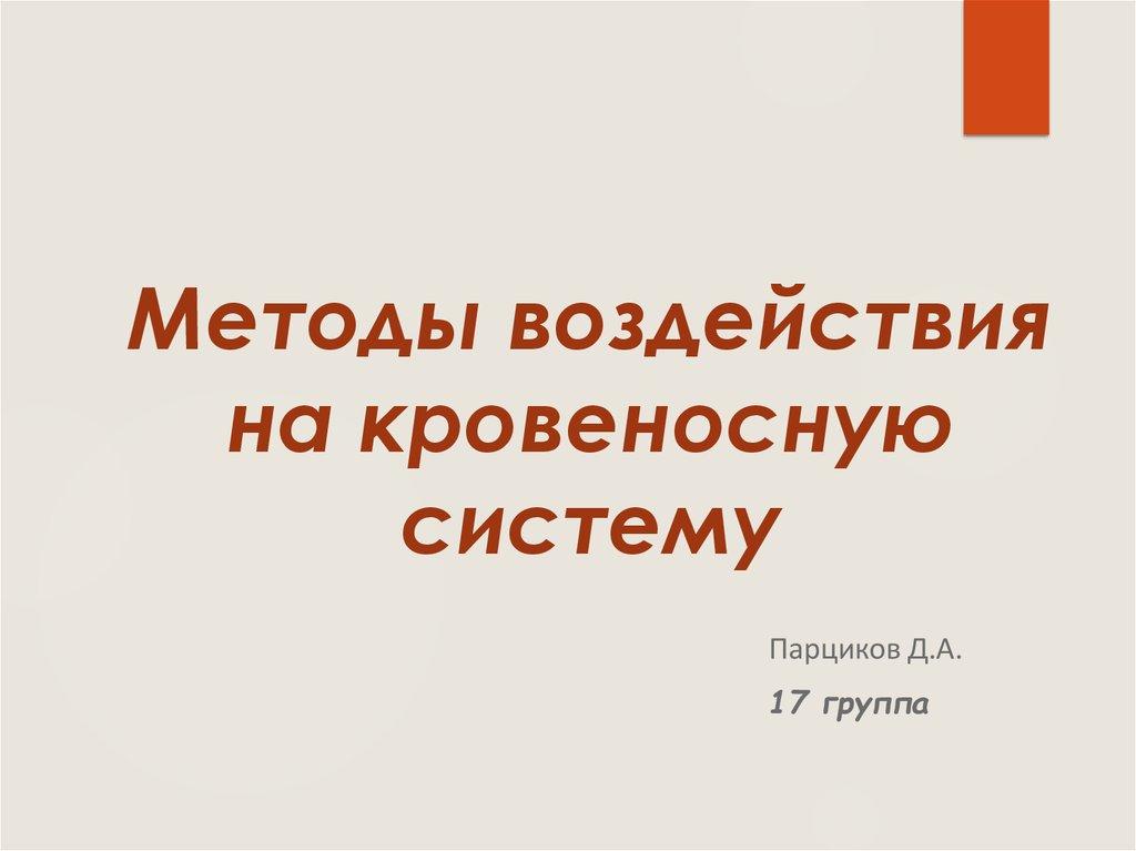 1. Методы воздействия на кровеносную систему