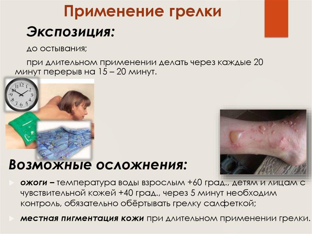 местная пигментация кожи при длительном применении грелки.