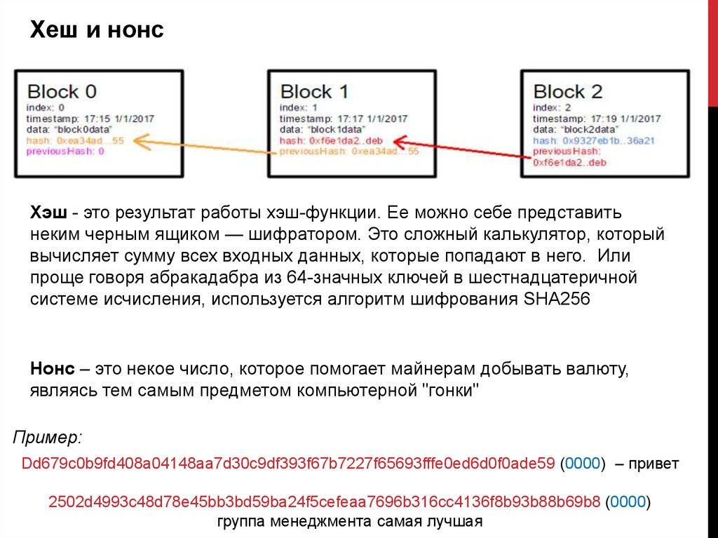 Хеш и нонсХэш - это результат работы хэш-функции. Ее можно себе представить