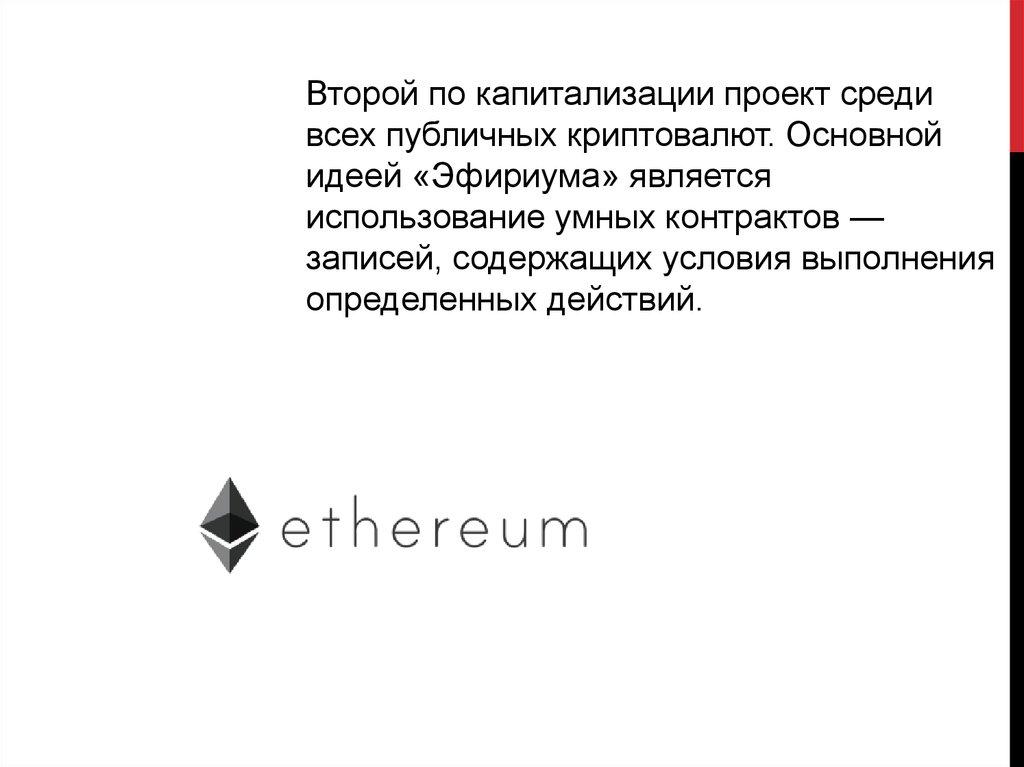 Второй по капитализации проект средивсех публичных криптовалют. Основной