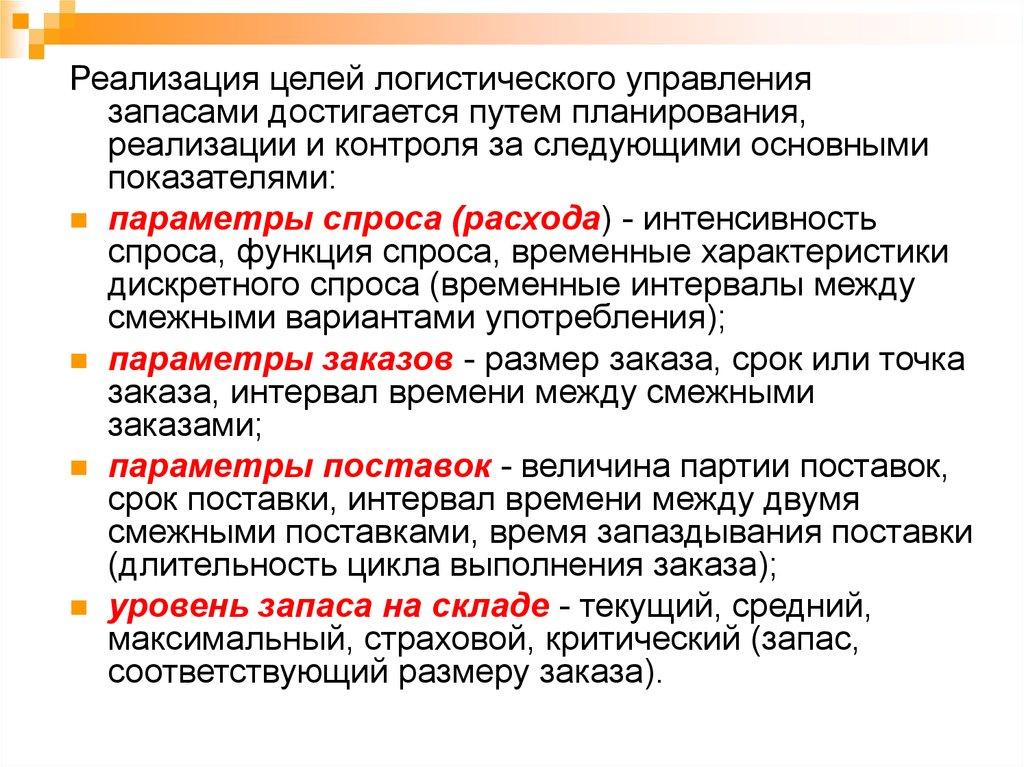 Реализация целей логистического управлениязапасами достигается путем планирования,