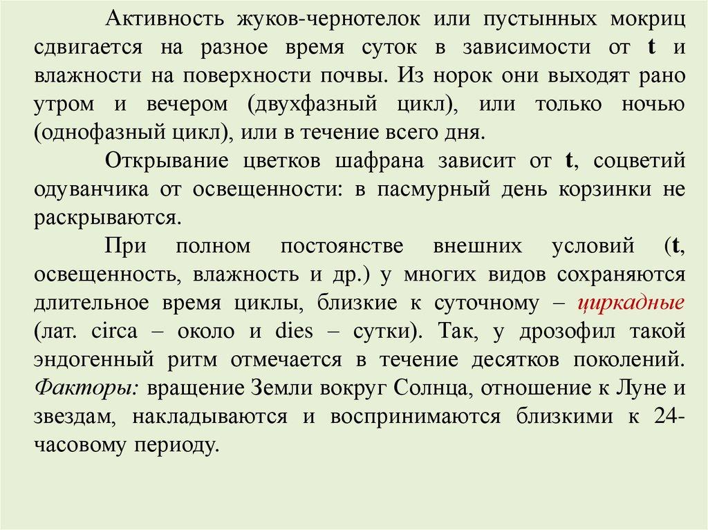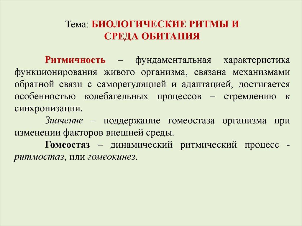 Тема: БИОЛОГИЧЕСКИЕ РИТМЫ ИСРЕДА ОБИТАНИЯ