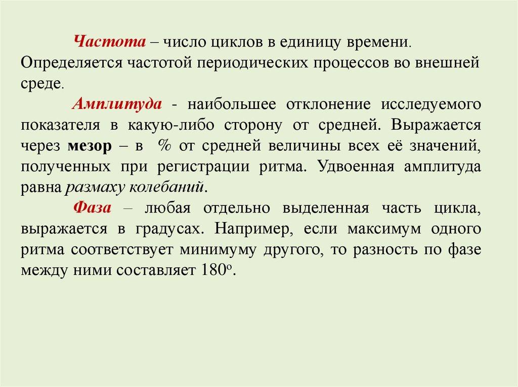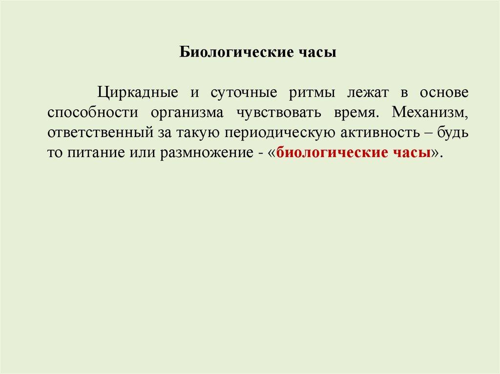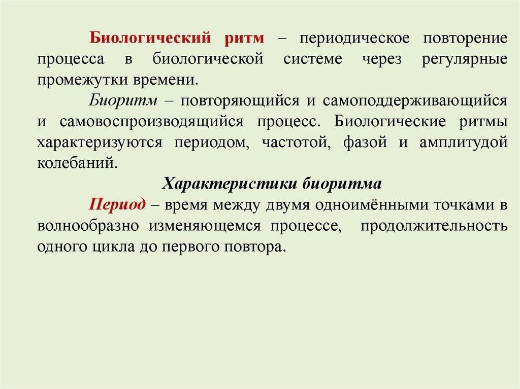Биологический ритм – периодическое повторениепроцесса в биологической системе через регулярные