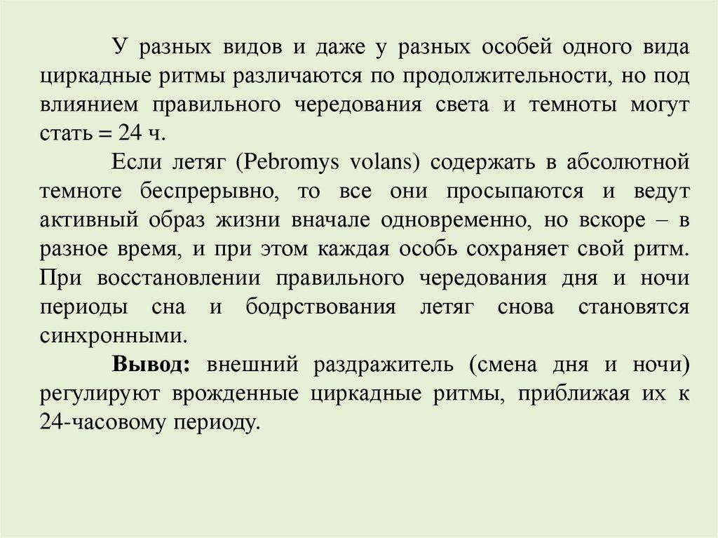 частотой циркадианного ритма, а для ночных – отрицательная.