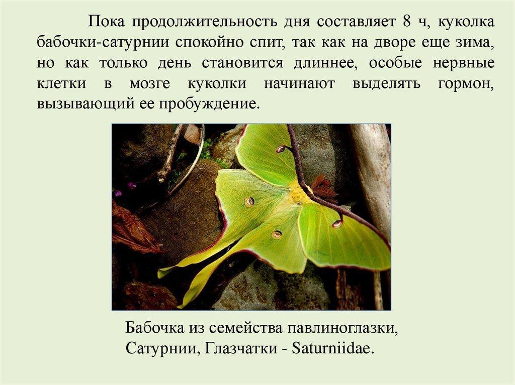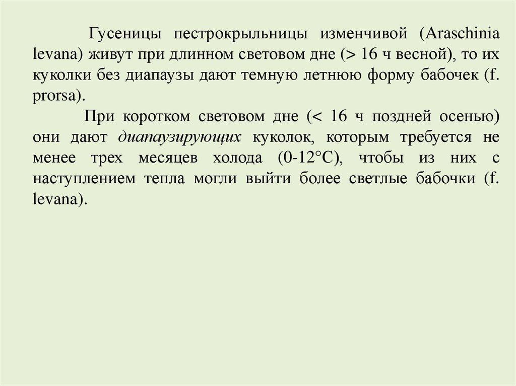 Гусеницы пестрокрыльницы изменчивой (Araschinialevana) живут при длинном световом дне (> 16 ч весной), то их