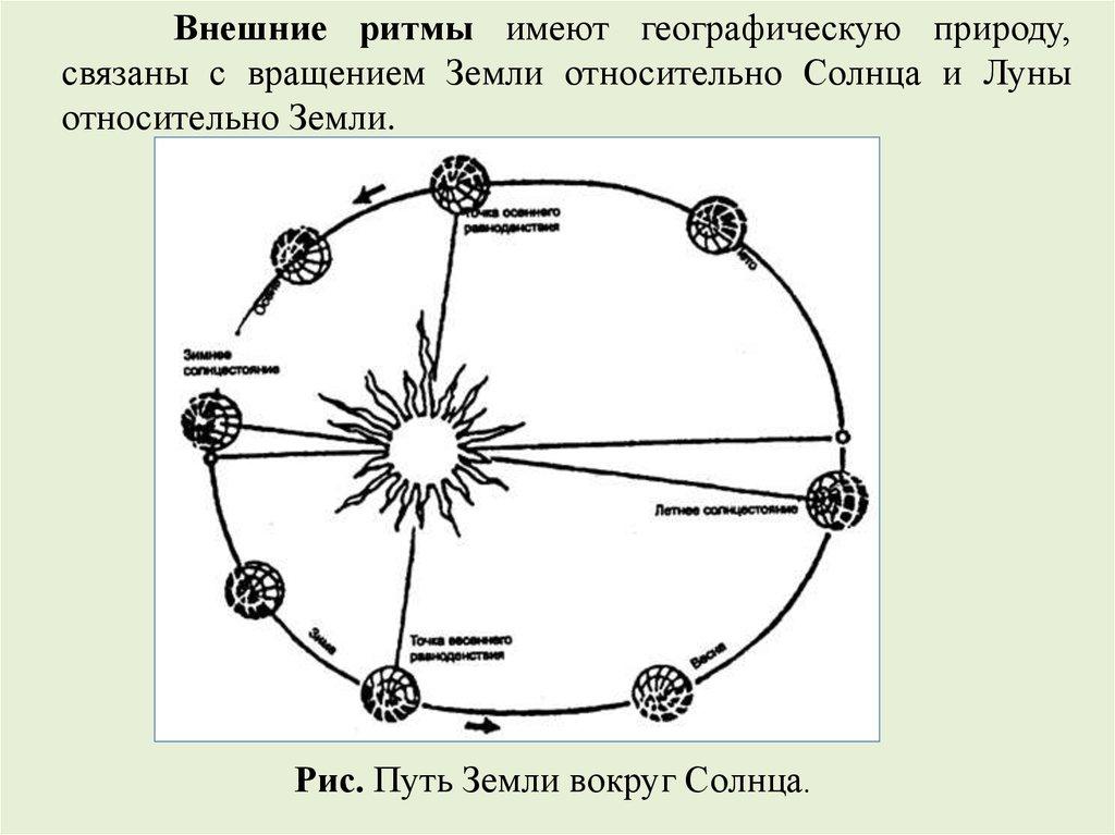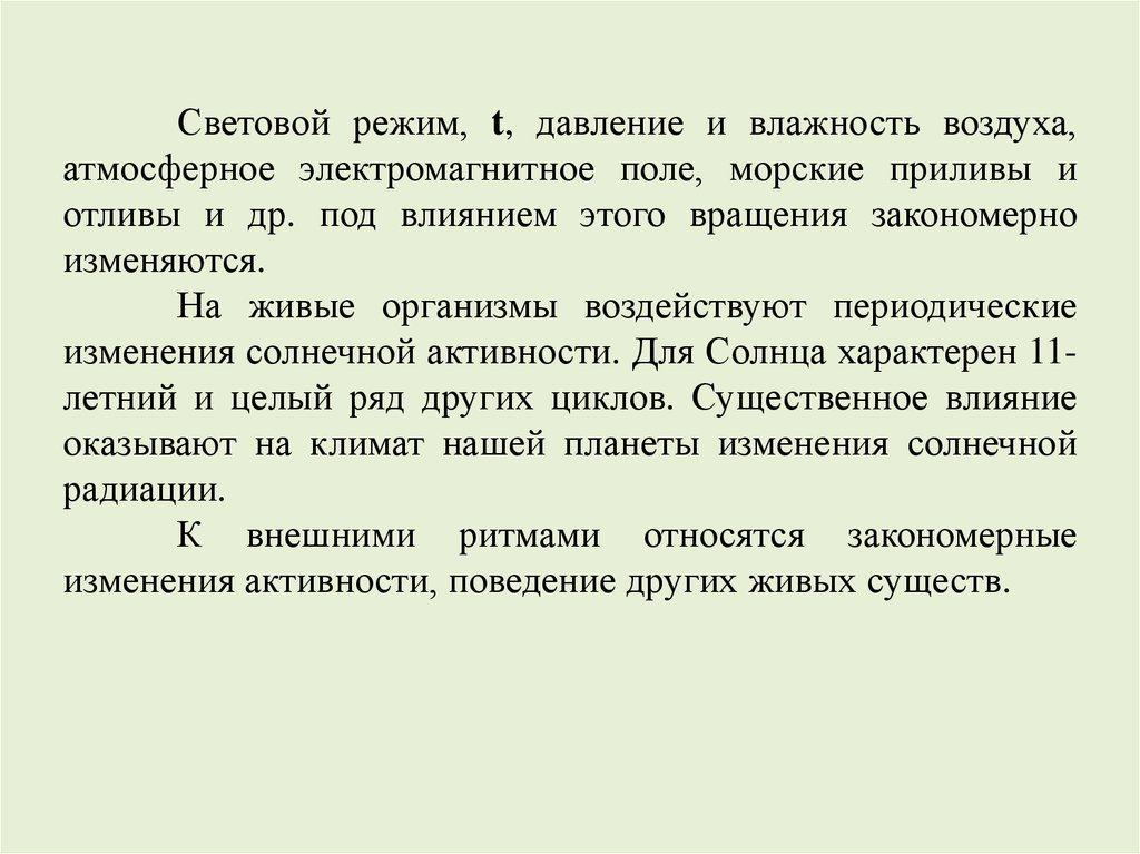 Внешние ритмы имеют географическую природу,связаны с вращением Земли относительно Солнца и Луны