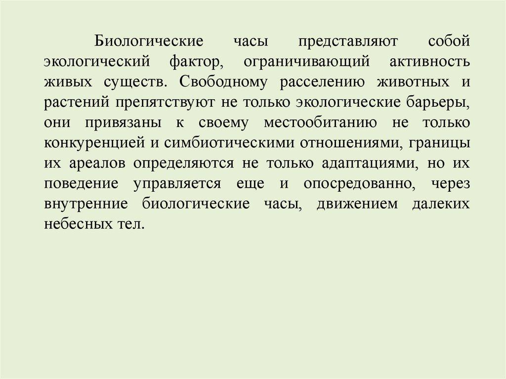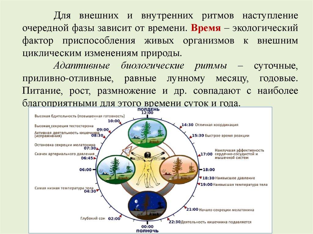 Для внешних и внутренних ритмов наступлениеочередной фазы зависит от времени. Время – экологический