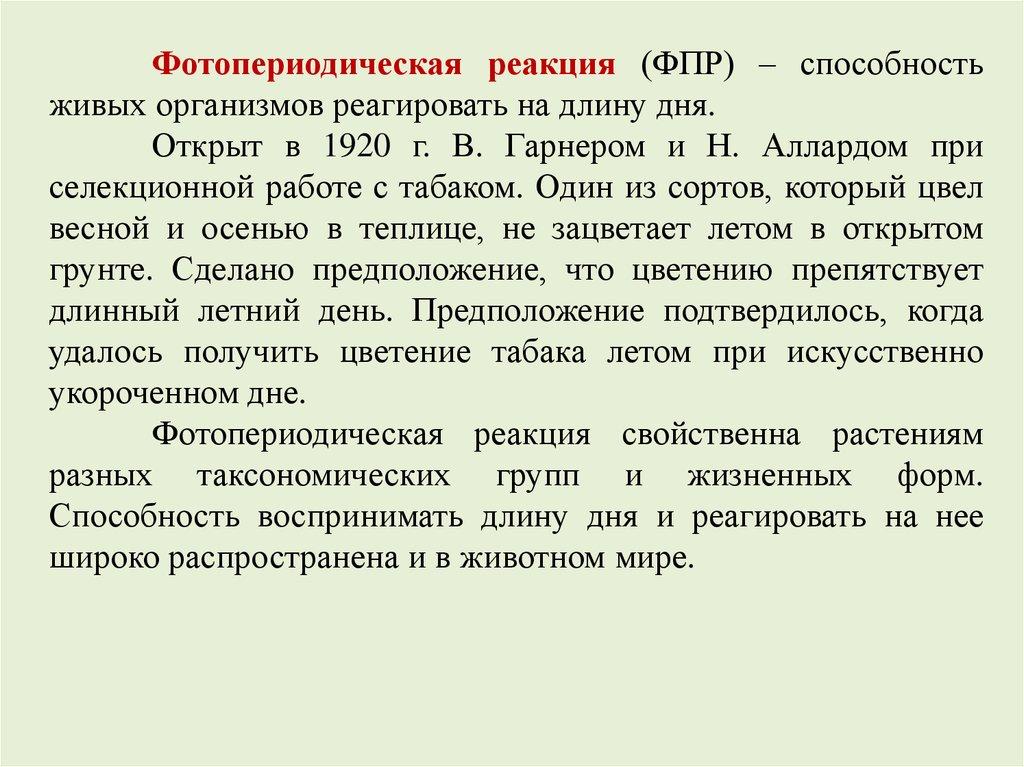 фотопериодом, задолго до ухудшения погоды и сокращения