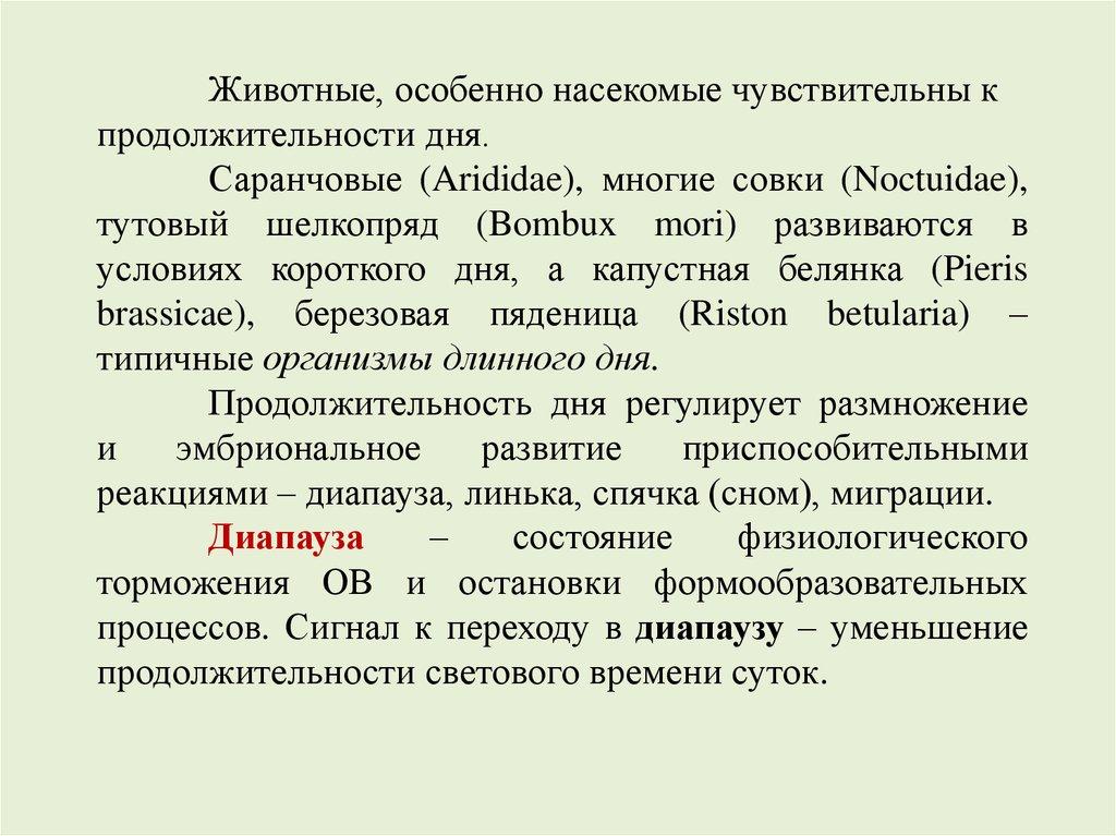 процессов. Сигнал к переходу в диапаузу – уменьшение