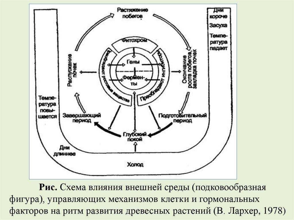 Рис. Схема влияния внешней среды (подковообразнаяфигура), управляющих механизмов клетки и гормональных