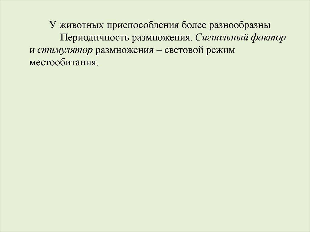 У животных приспособления более разнообразныПериодичность размножения. Сигнальный фактор