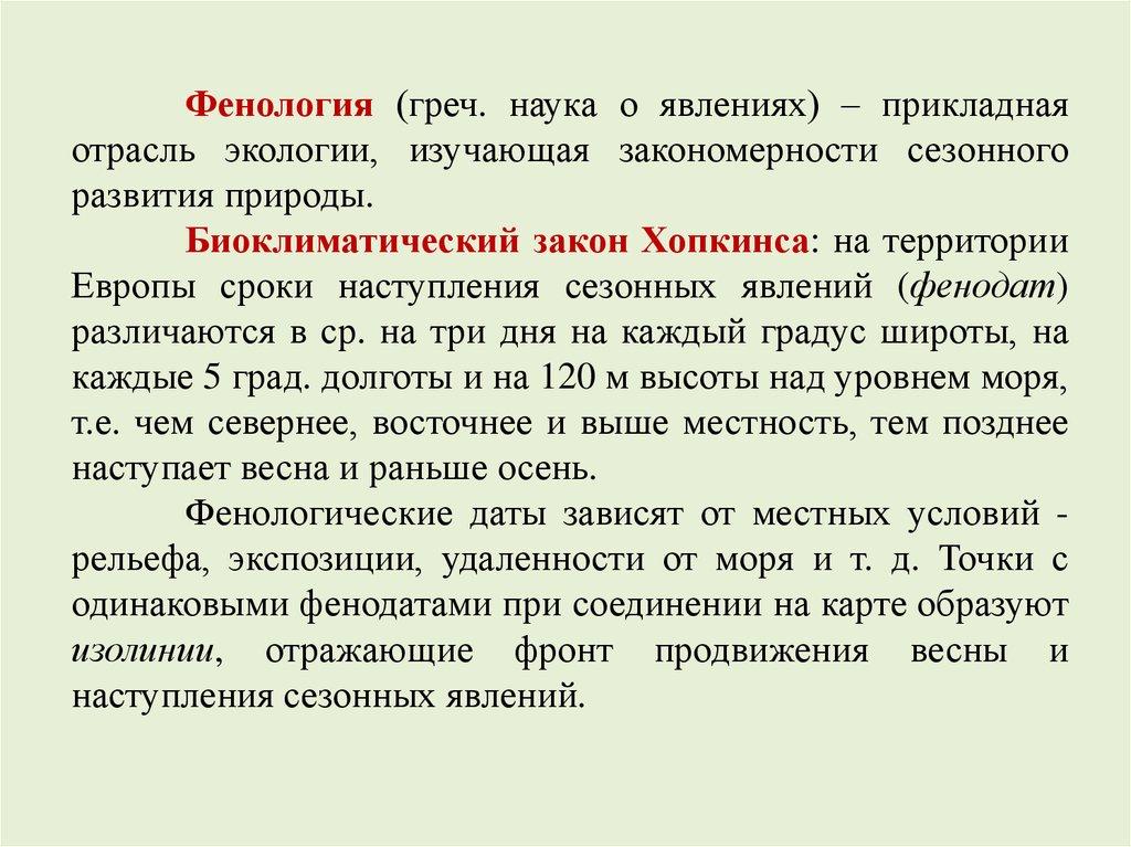 Фенология (греч. наука о явлениях) – прикладнаяотрасль экологии, изучающая закономерности сезонного