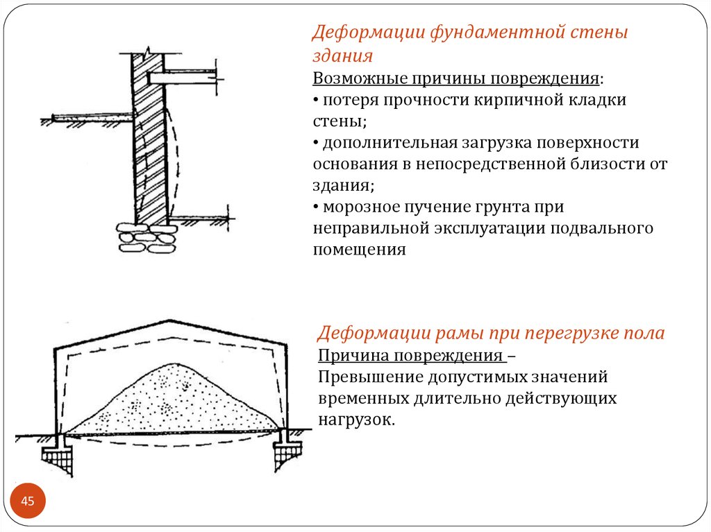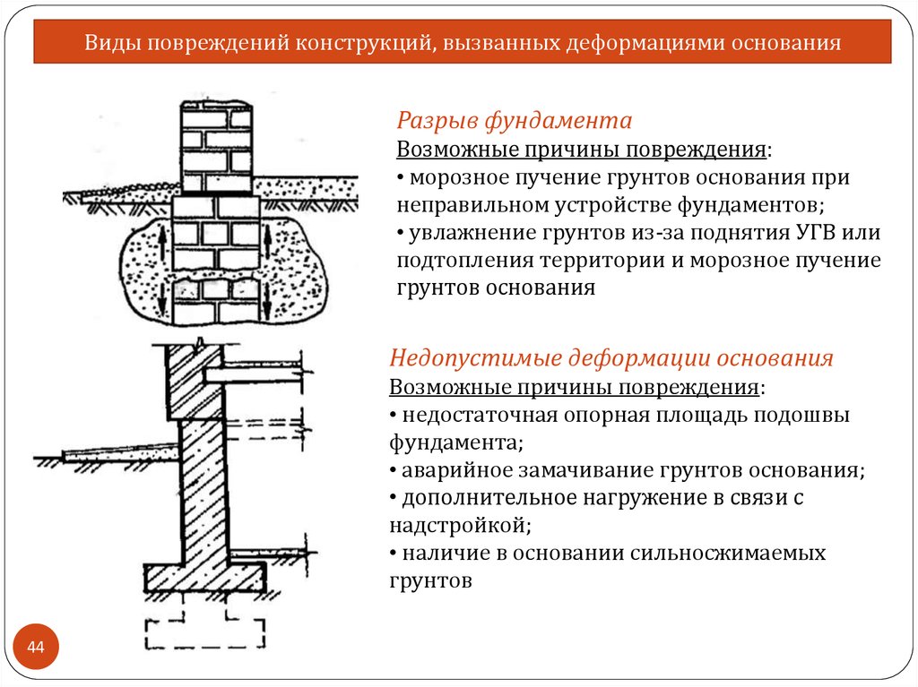 • неправильная конструкция фундаментов, не учитывающая