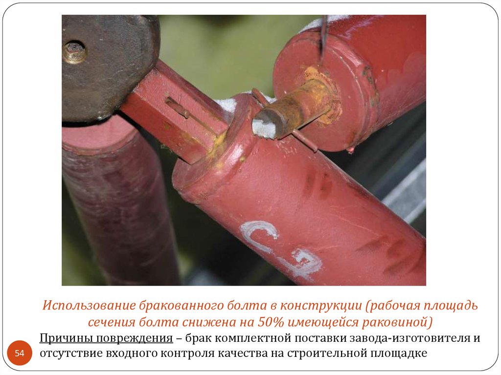 Причины повреждения – пластические деформации в арматуре при