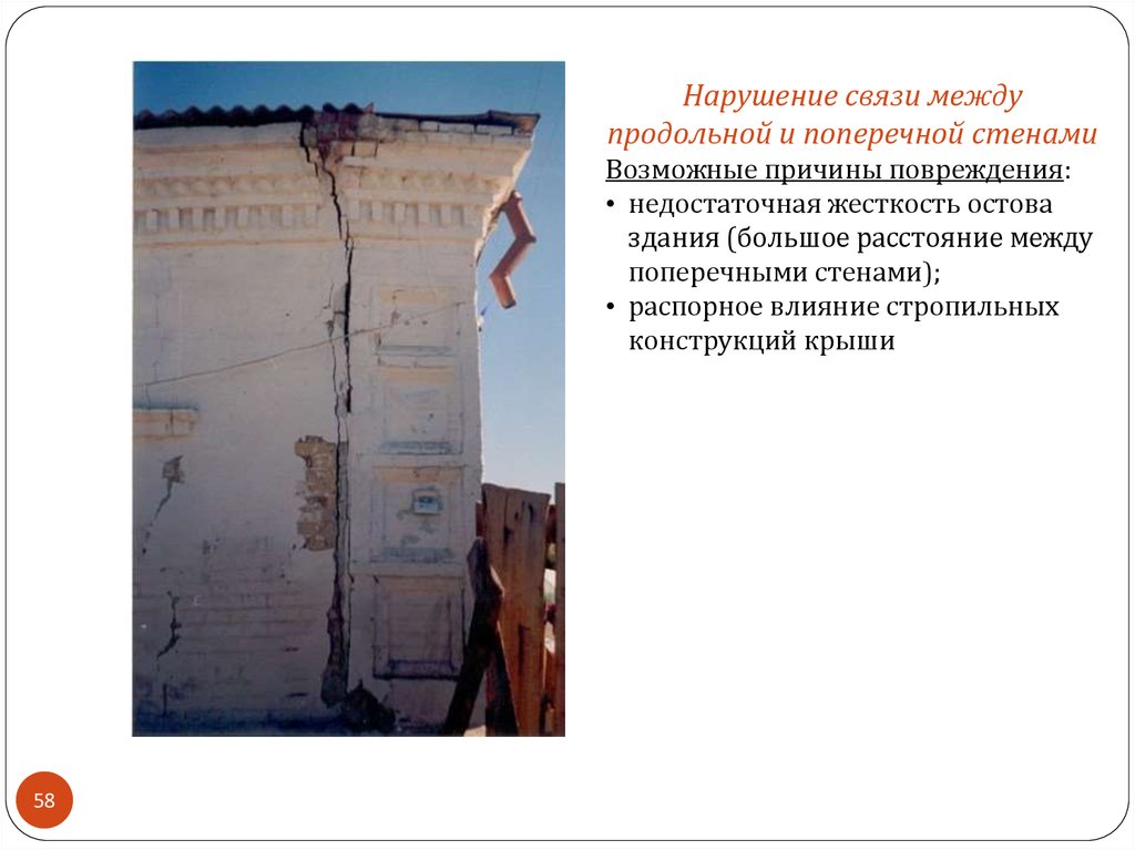 Нарушение связи междупродольной и поперечной стенами