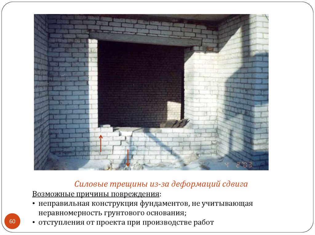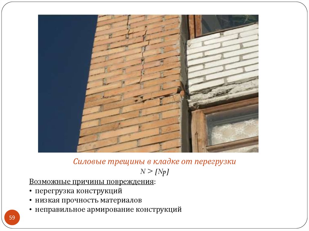 Силовые трещины в кладке от перегрузкиN > [Np]