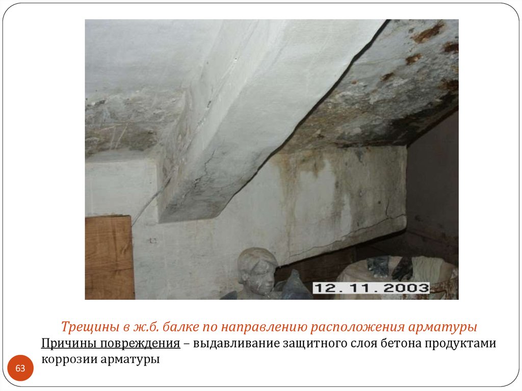 Трещины в ж.б. балке по направлению расположения арматуры63