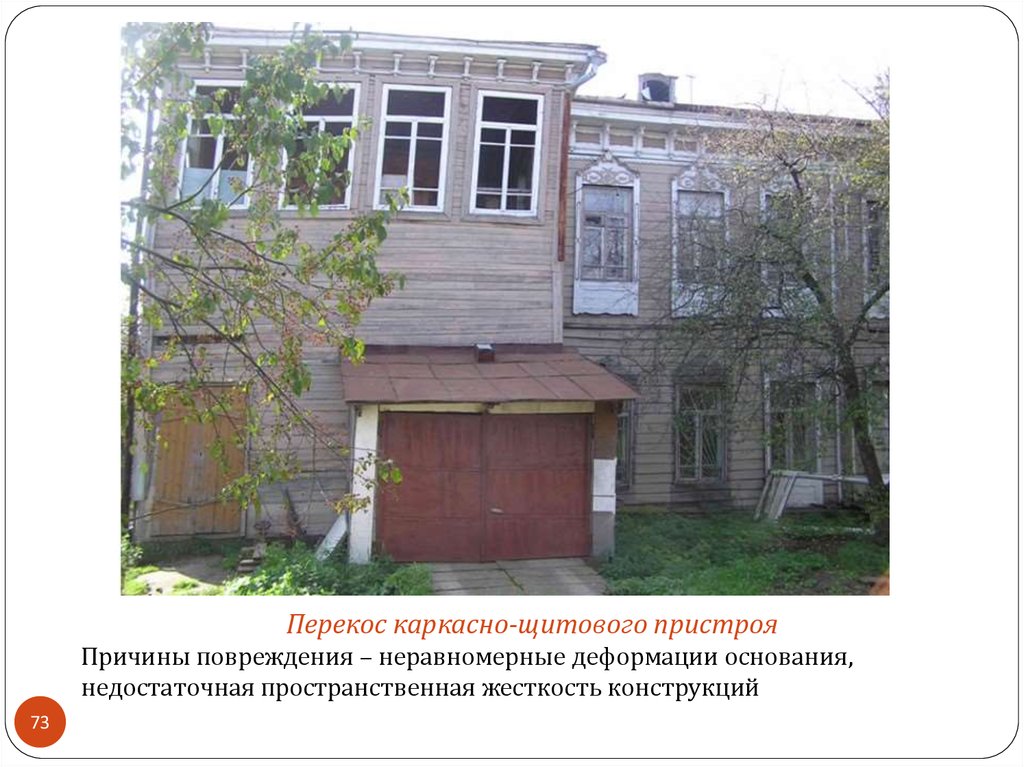 Перекос каркасно-щитового пристрояПричины повреждения – неравномерные деформации основания,