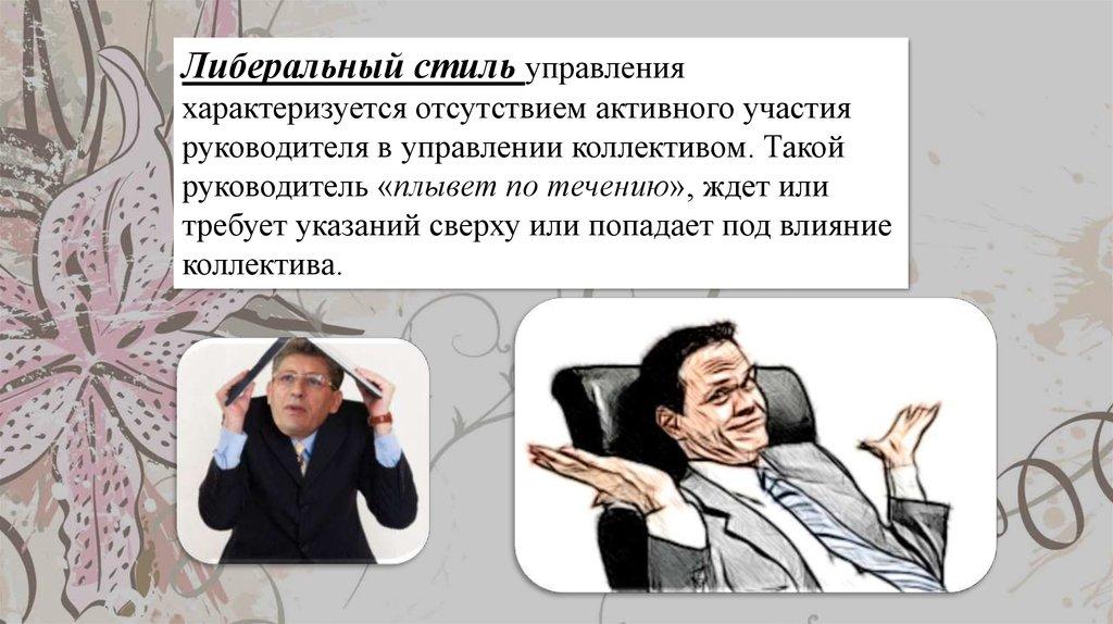 Либеральный стиль управленияхарактеризуется отсутствием активного участия