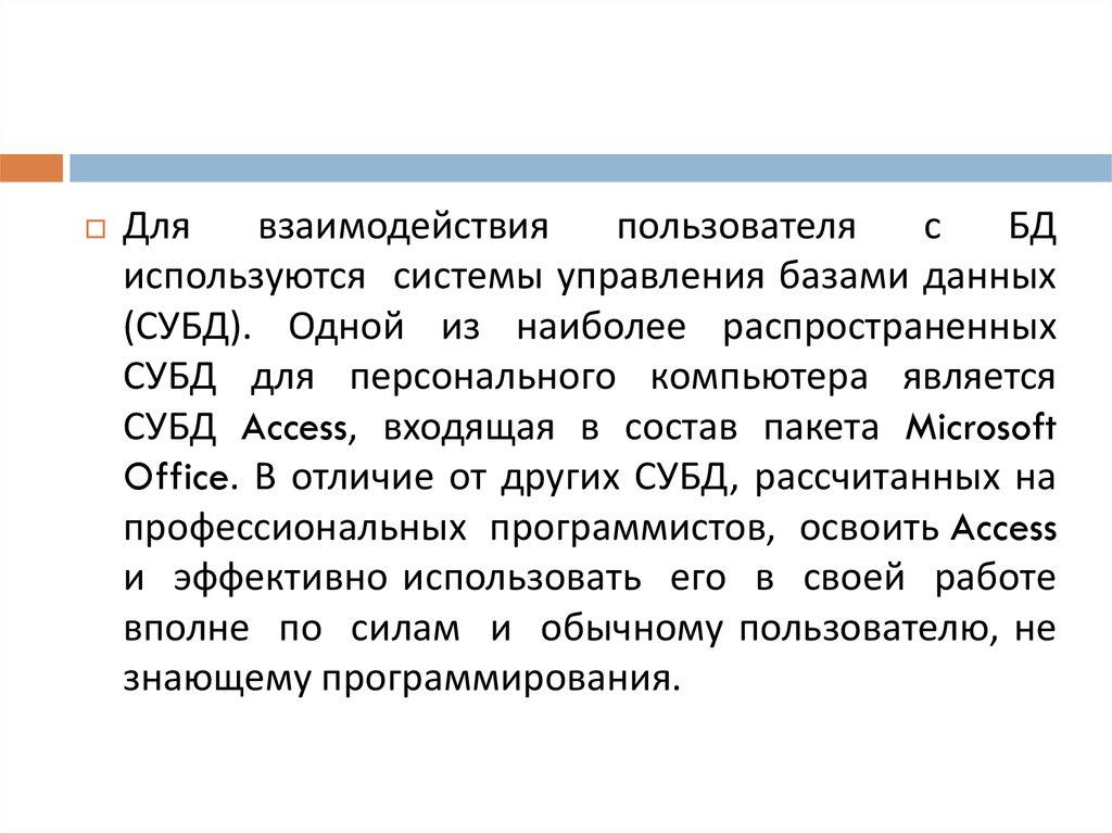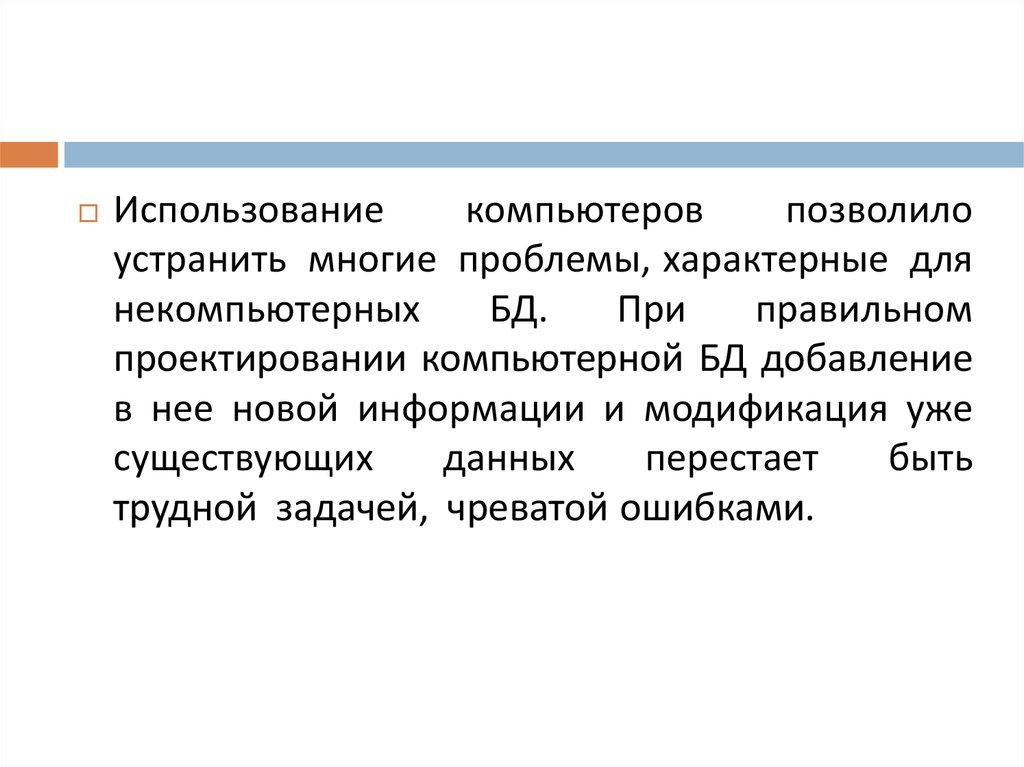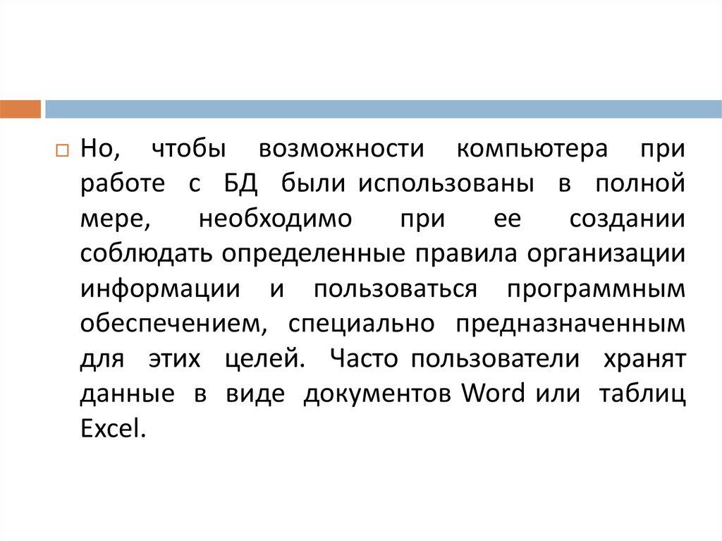 Но, чтобы возможности компьютера приработе с БД были использованы в полной