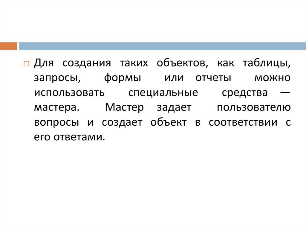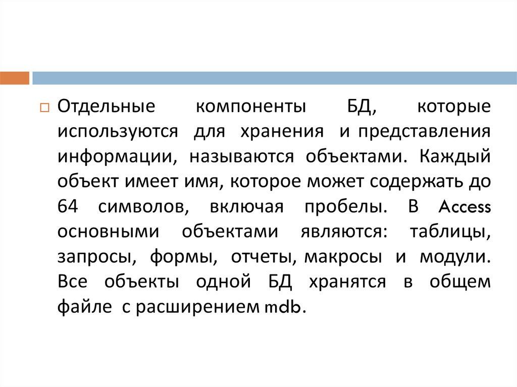 Каждый из открытых объектов Accessпоявляется в собственном окне.