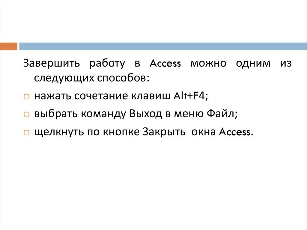 меню Файл или щелкнуть по кнопке Закрыть окна