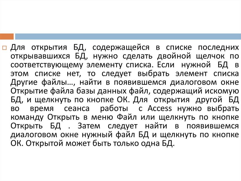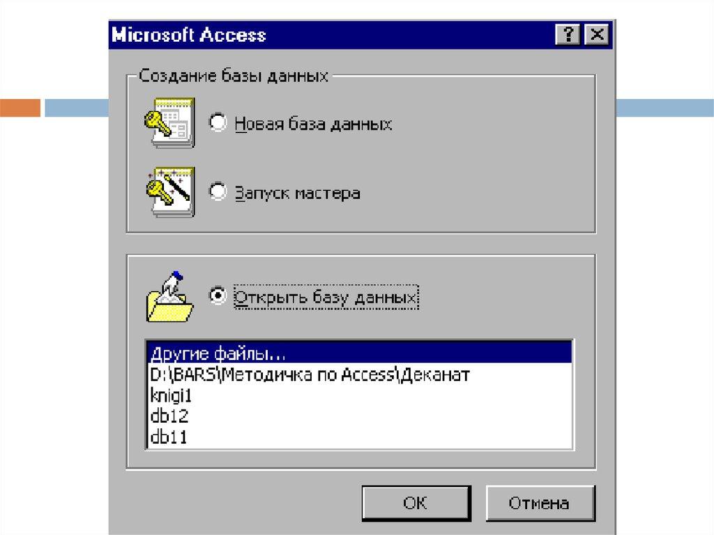 БД, и щелкнуть по кнопке ОК. Для открытия другой БД