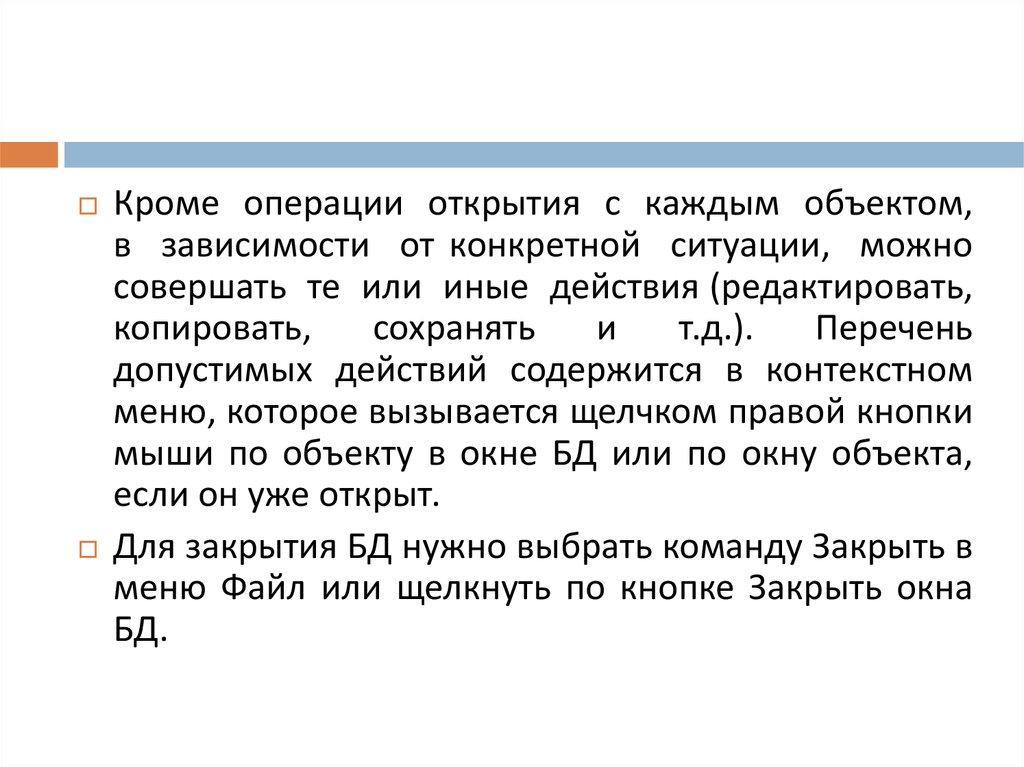 Кроме операции открытия с каждым объектом,в зависимости от конкретной ситуации, можно
