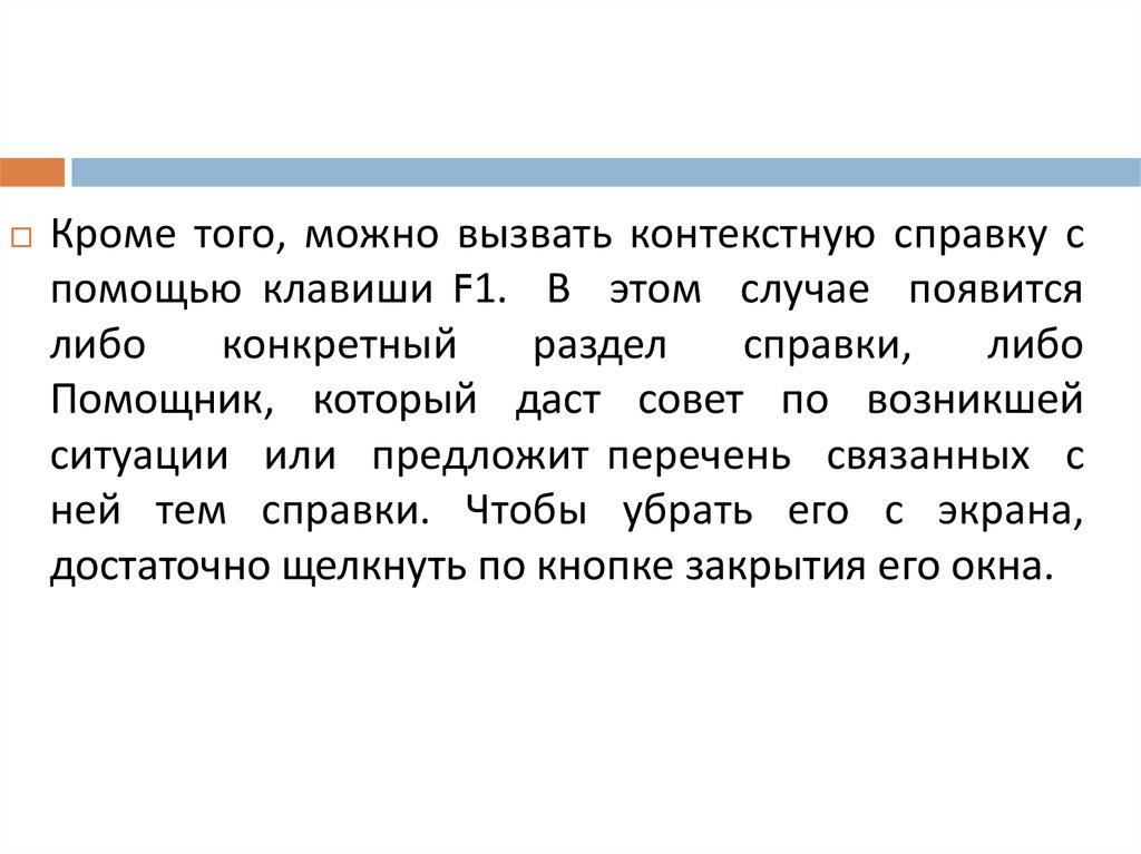 Кроме того, можно вызвать контекстную справку спомощью клавиши F1. В этом случае появится