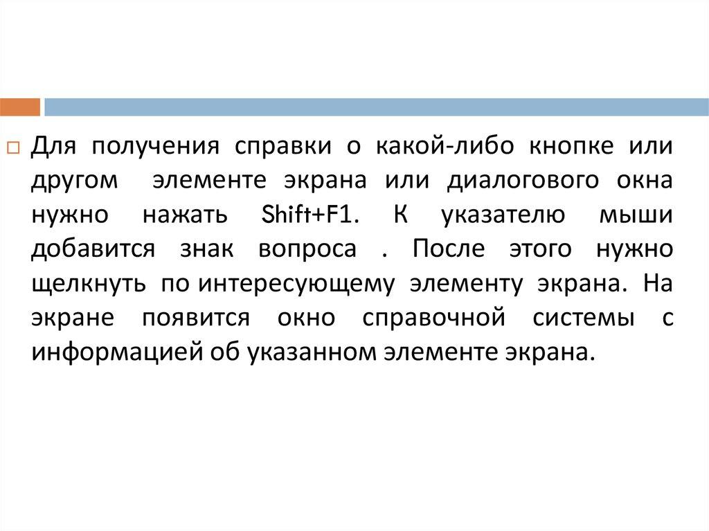 Для получения справки о какой-либо кнопке илидругом элементе экрана или диалогового окна