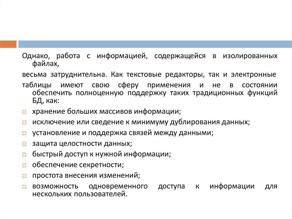 Однако, работа с информацией, содержащейся в изолированныхфайлах,
