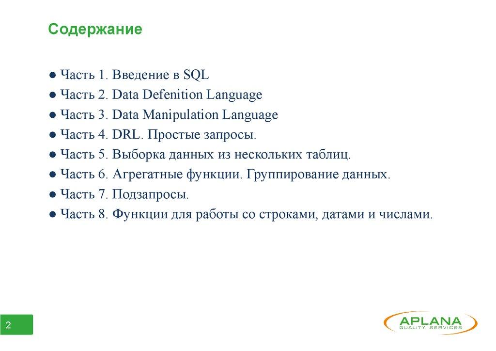 Содержание● Часть 1. Введение в SQL