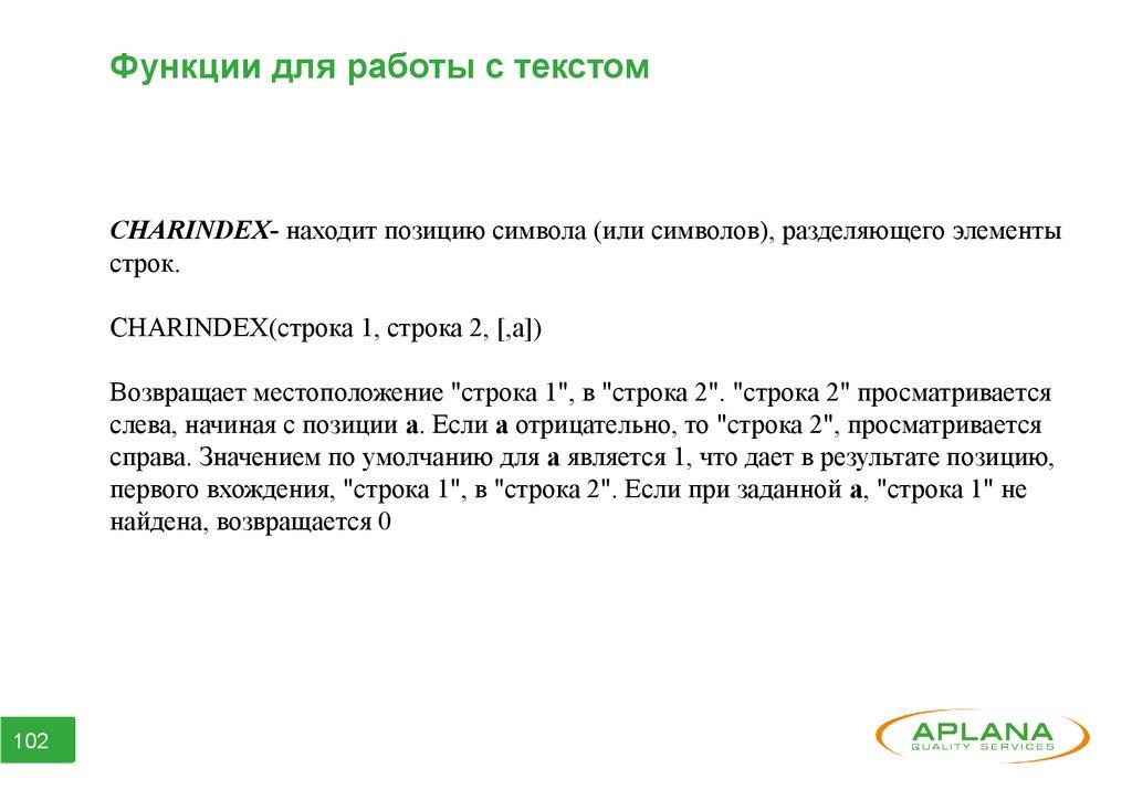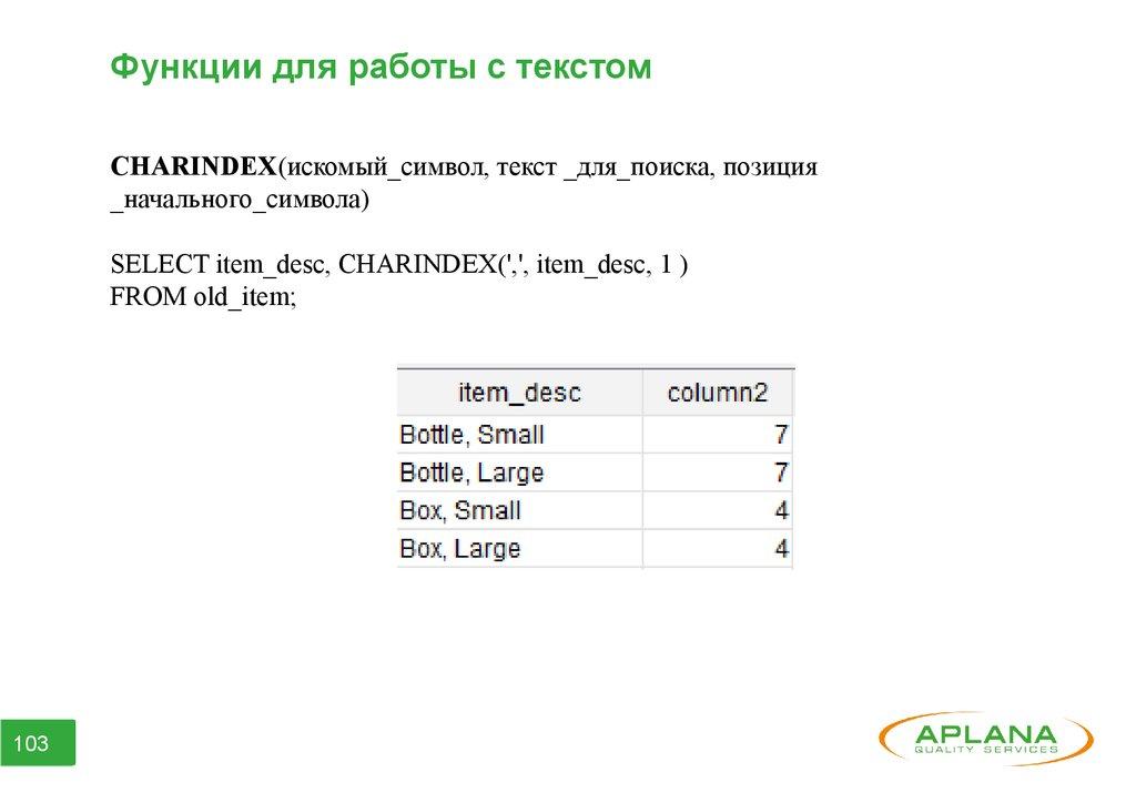 Функции для работы с текстомCHARINDEX(искомый_символ, текст _для_поиска, позиция