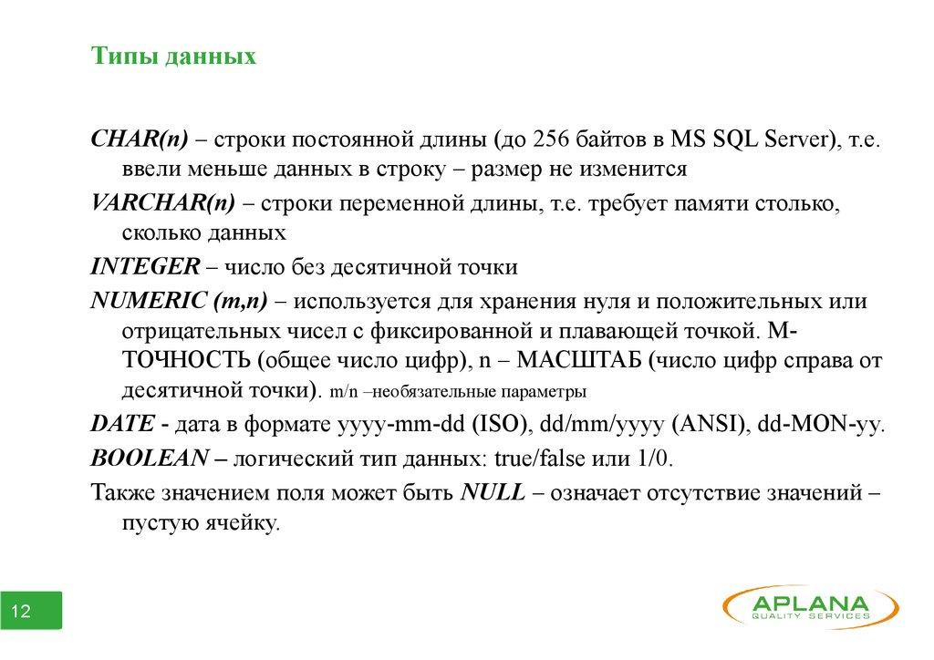 Столбец(column) – содержит информацию одного типа.