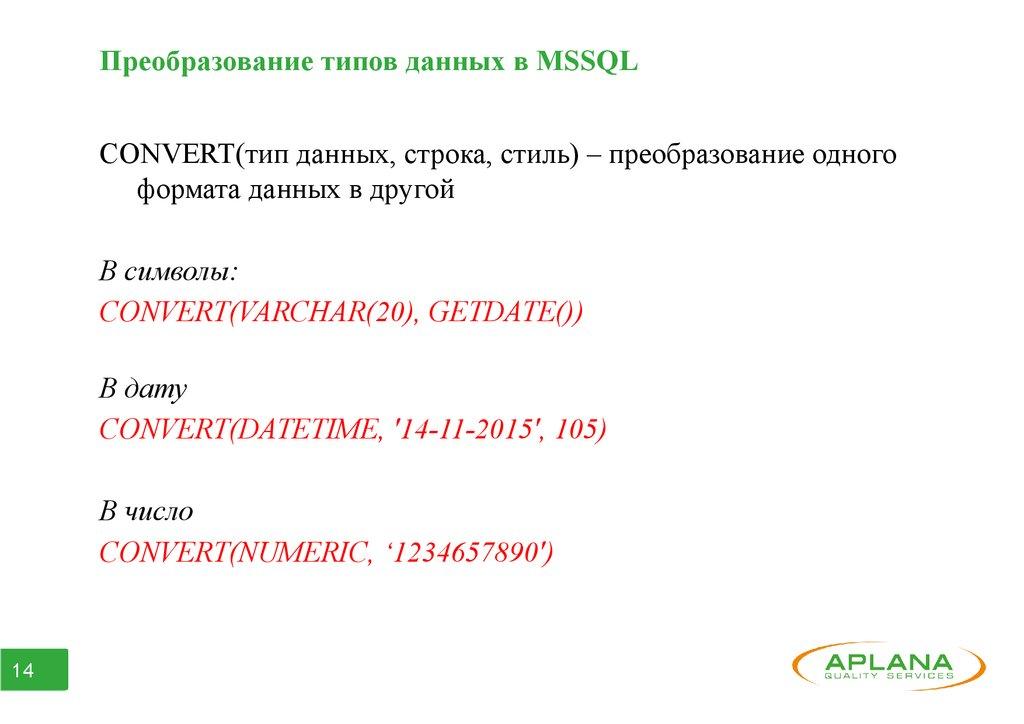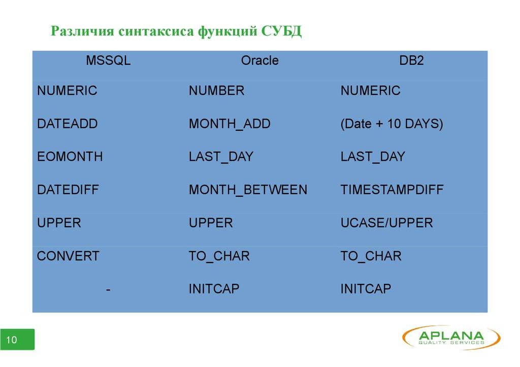 Различия синтаксиса функций СУБДMSSQL