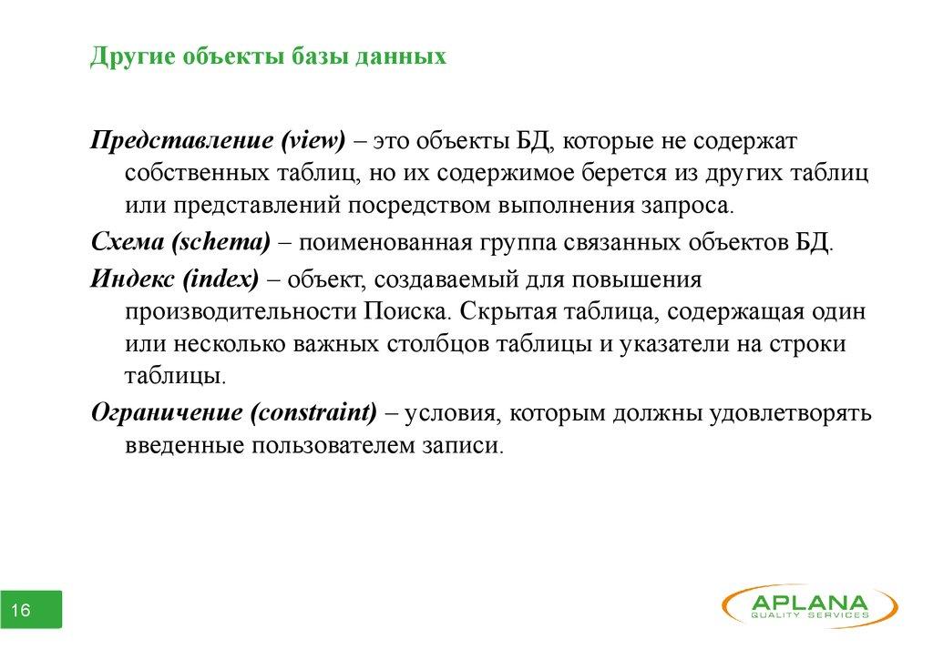 • Данные удовлетворяют определенным условиям целостности;
