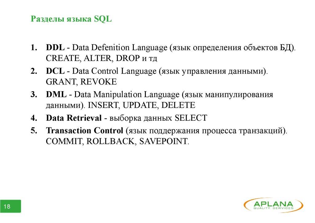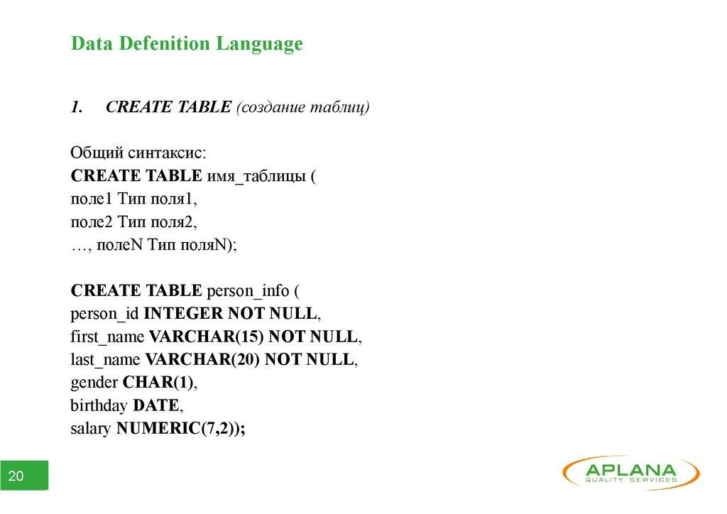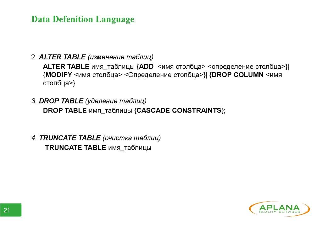 ● Часть 2. Data Defenition Language