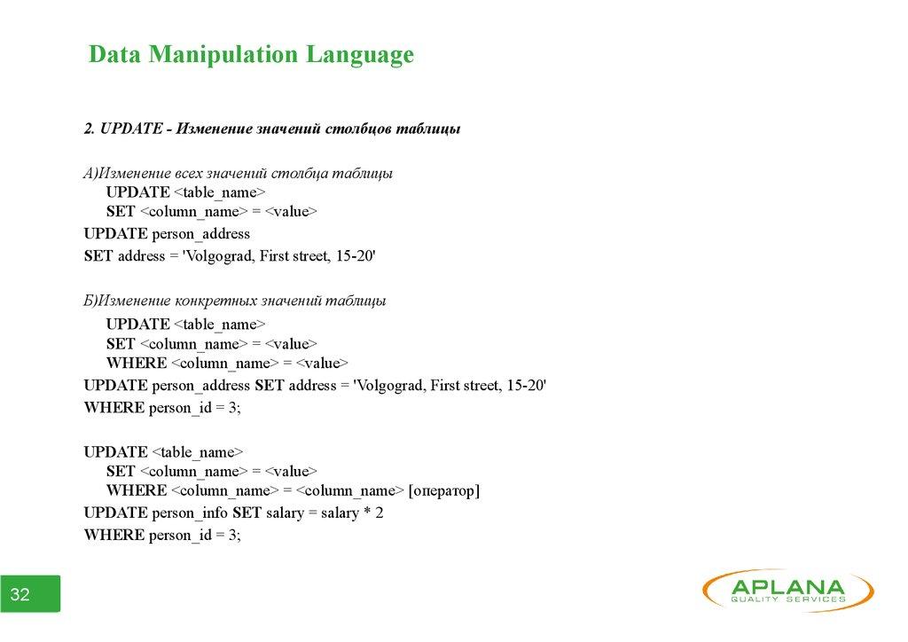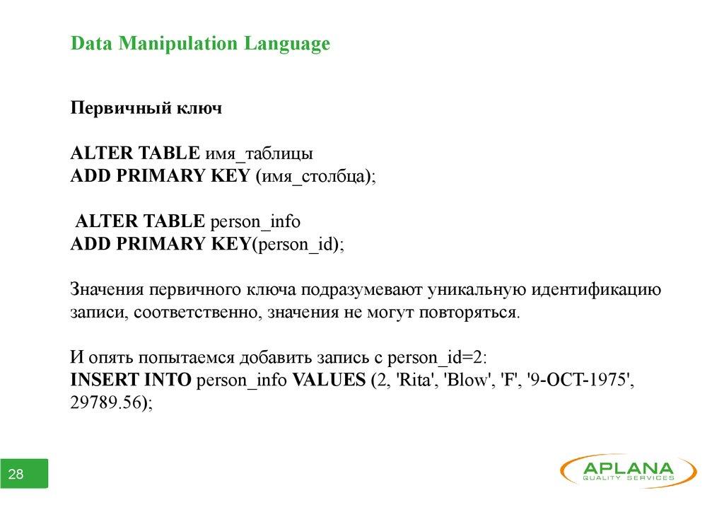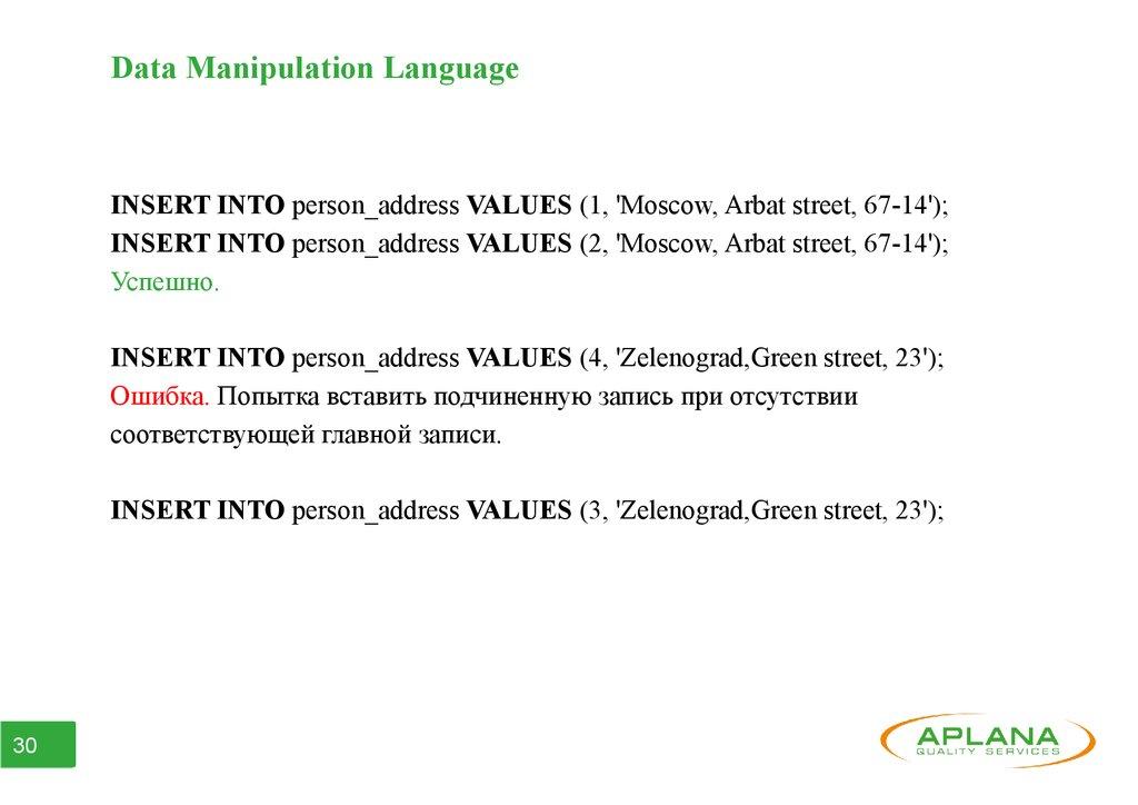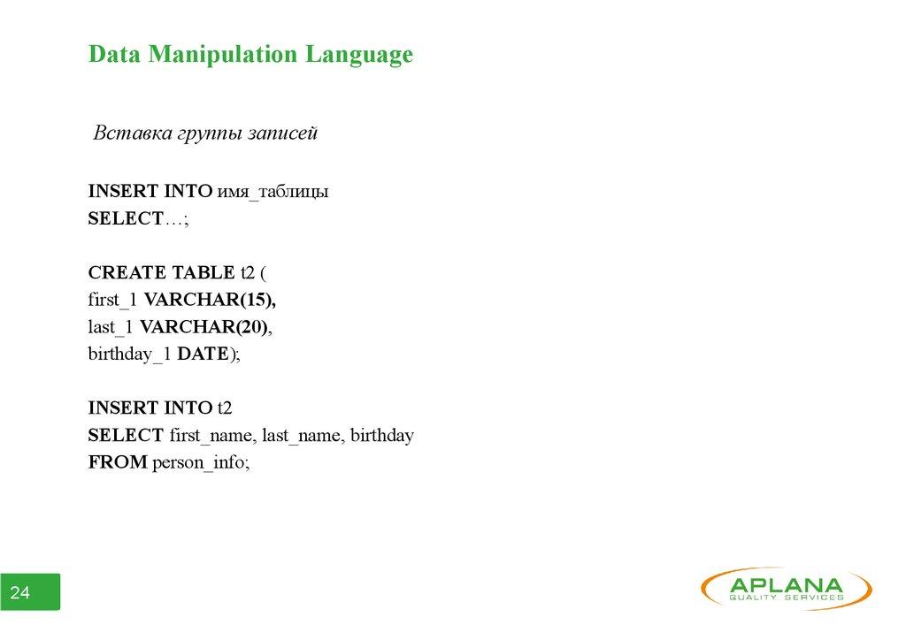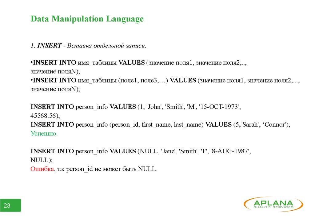 ● Часть 3. Data Manipulation Language