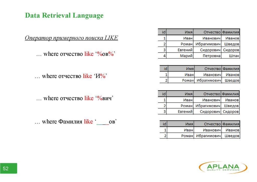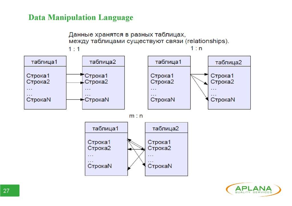 • Поддерживает операторы манипулирования таблицами