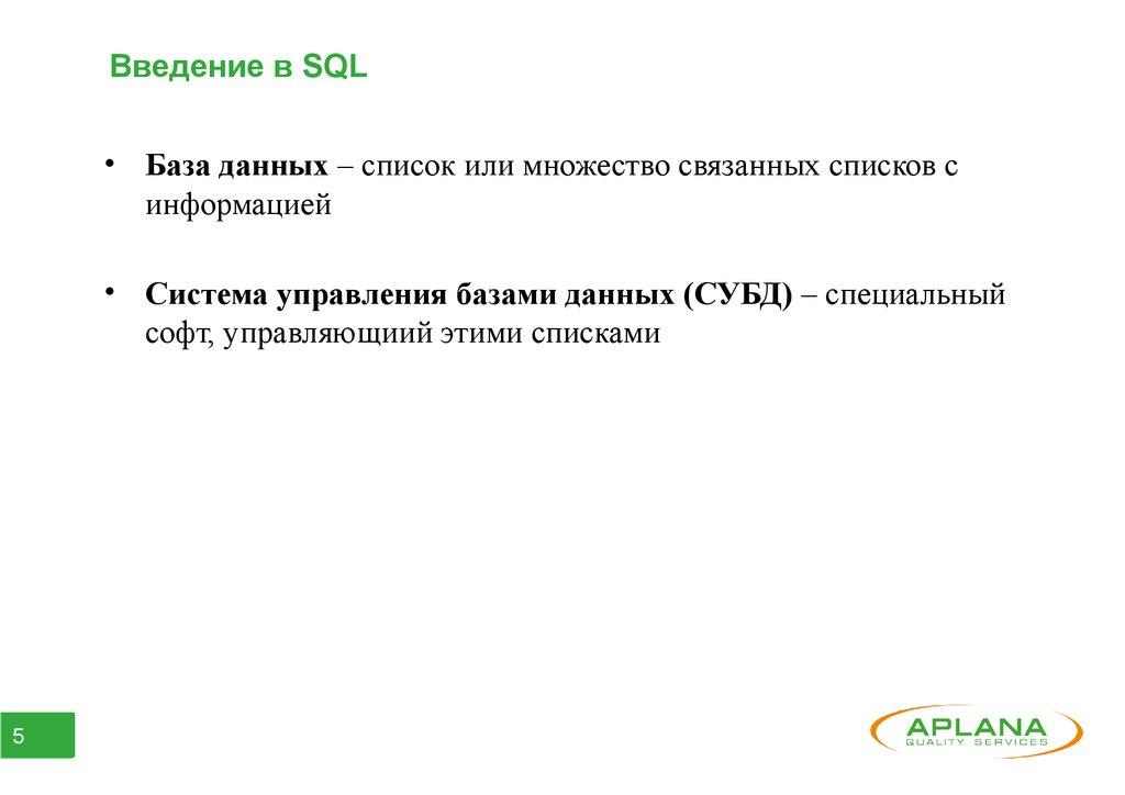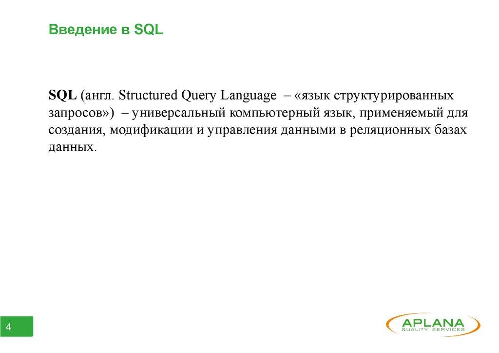 Введение в SQLSQL (англ. Structured Query Language – «язык структурированных