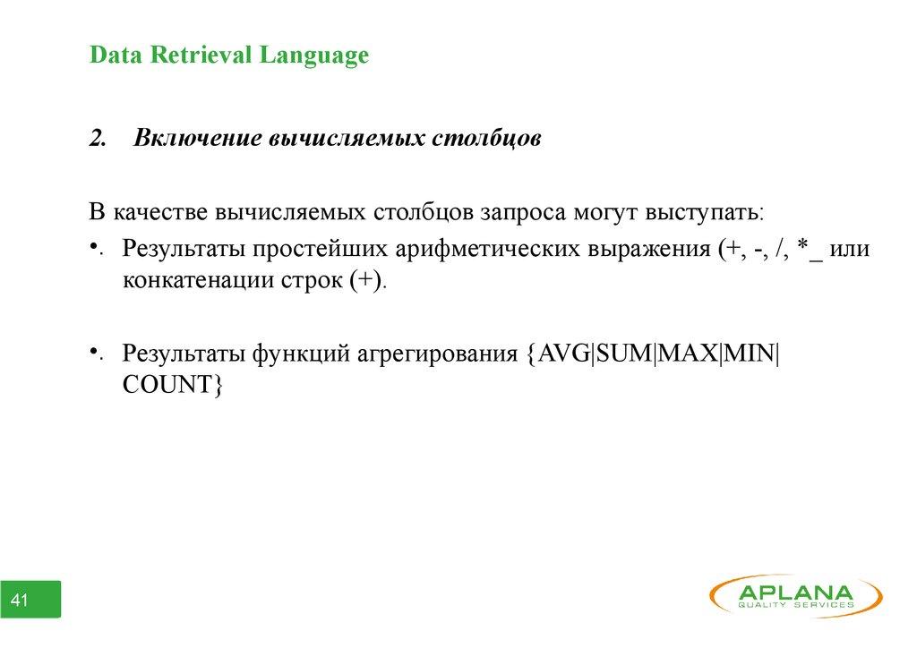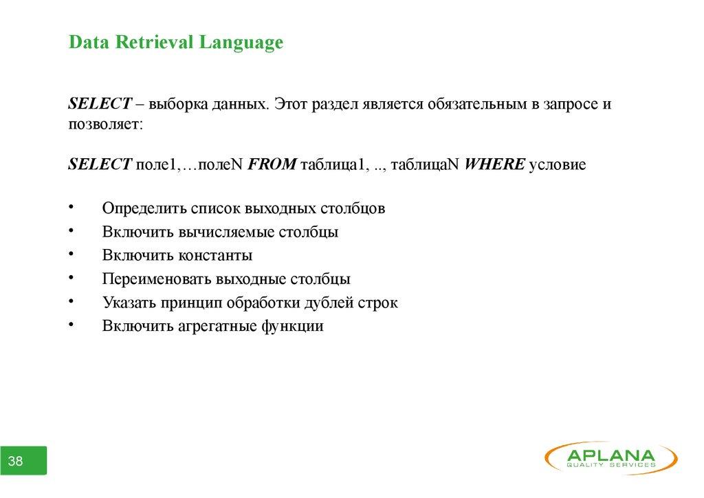 позволяет выполнять значительную часть DML, DDR и DR
