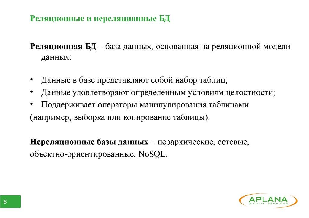 Реляционные и нереляционные БДРеляционная БД – база данных, основанная на реляционной модели