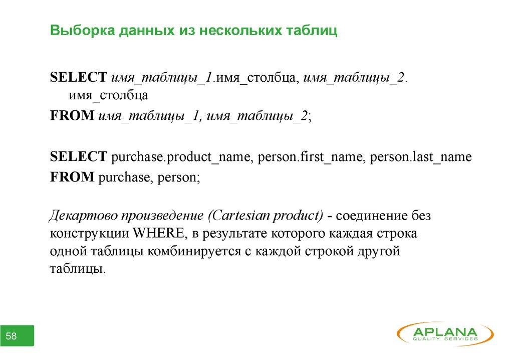 ● Часть 5. Выборка данных из нескольких таблиц.