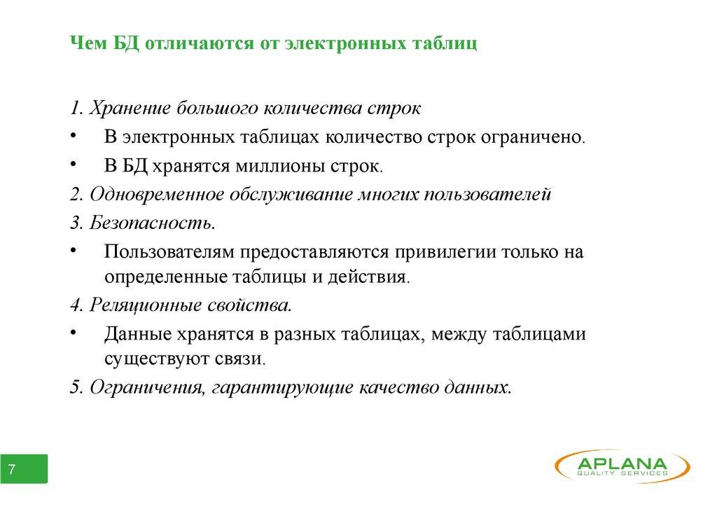 Чем БД отличаются от электронных таблиц1. Хранение большого количества строк