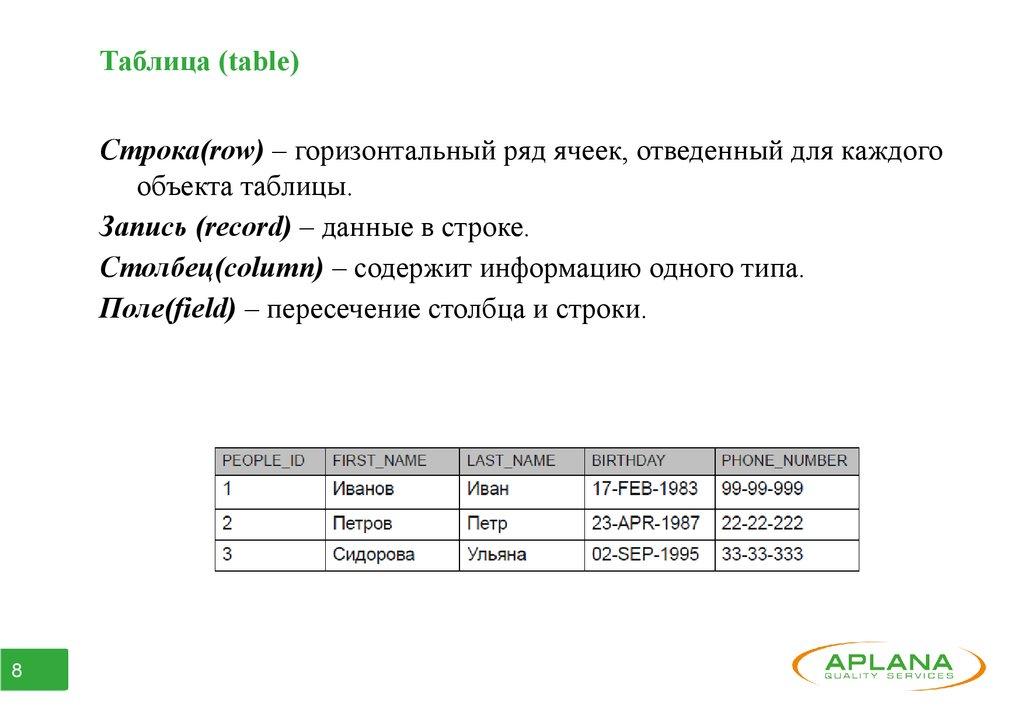 Запись (record) – данные в строке.