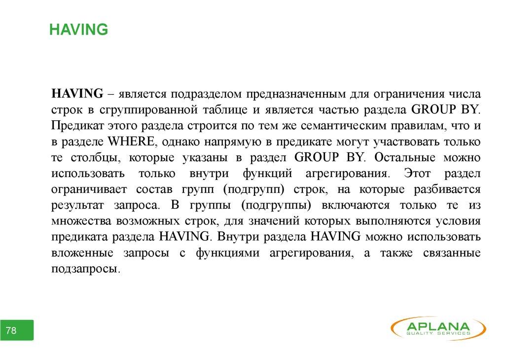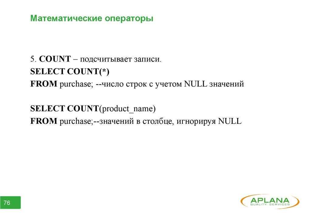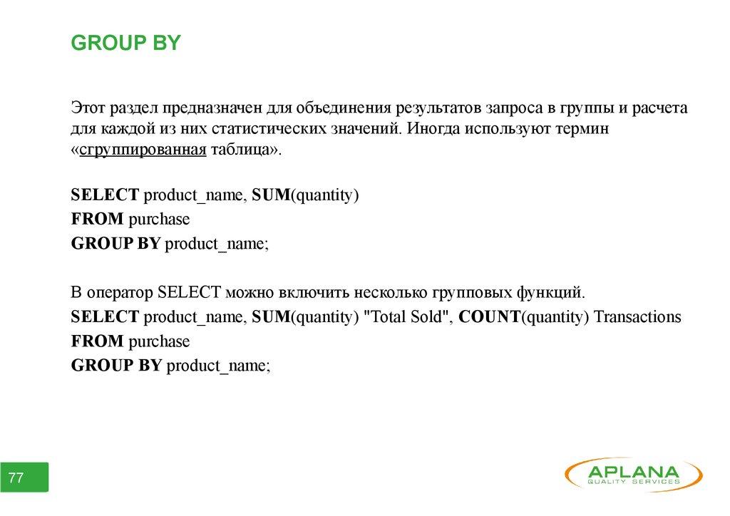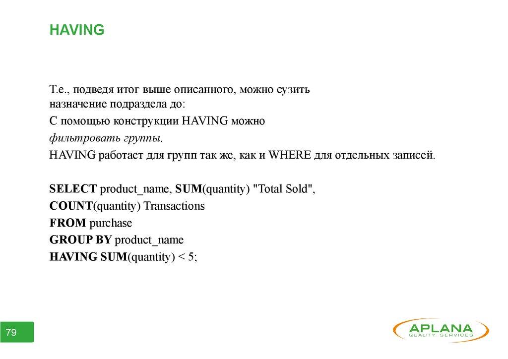 ● Часть 6. Агрегатные функции. Группирование данных.