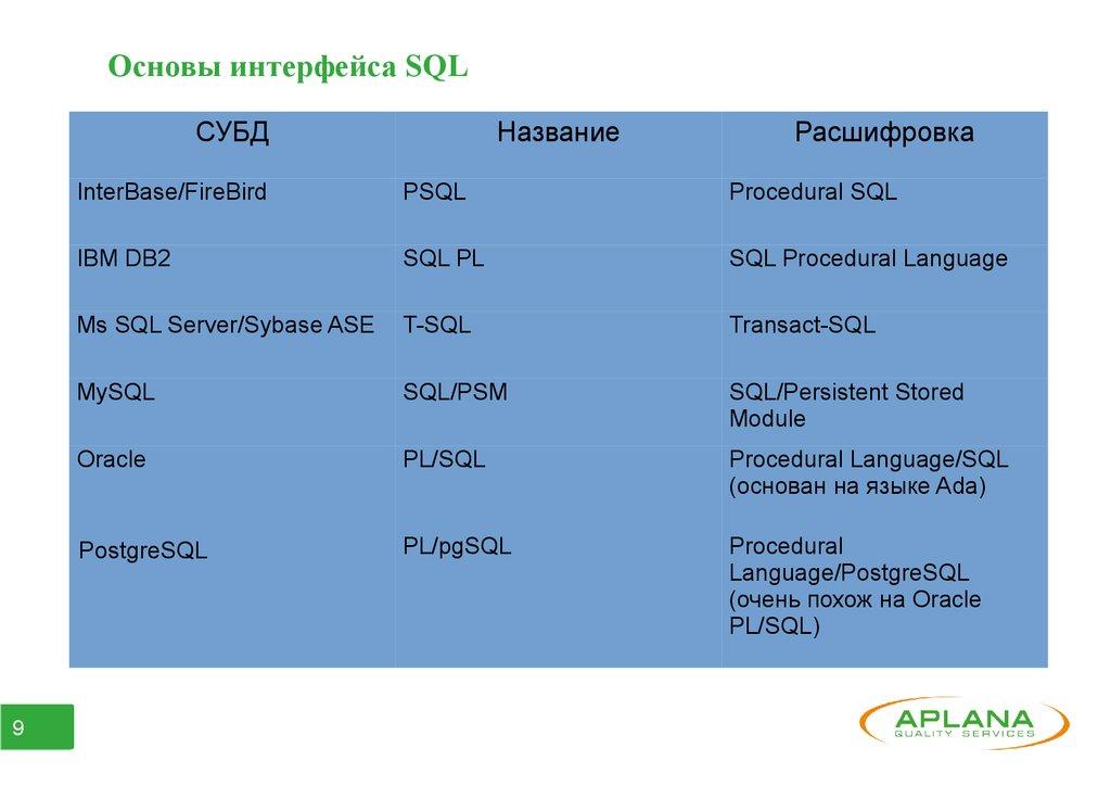 Основы интерфейса SQLСУБД