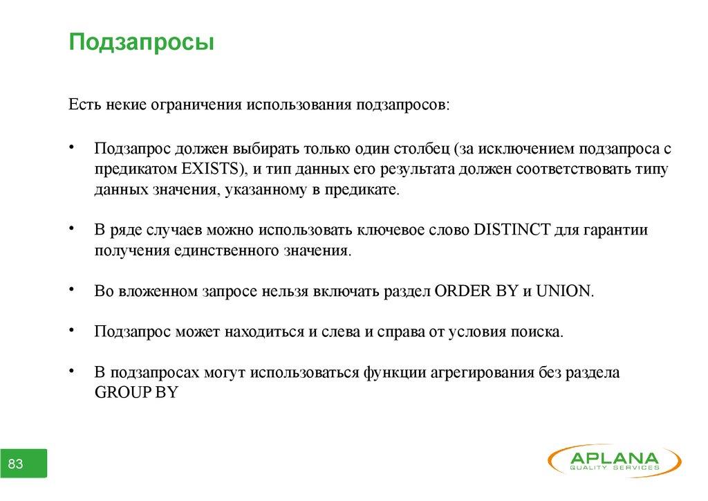 ● Часть 7. Подзапросы.