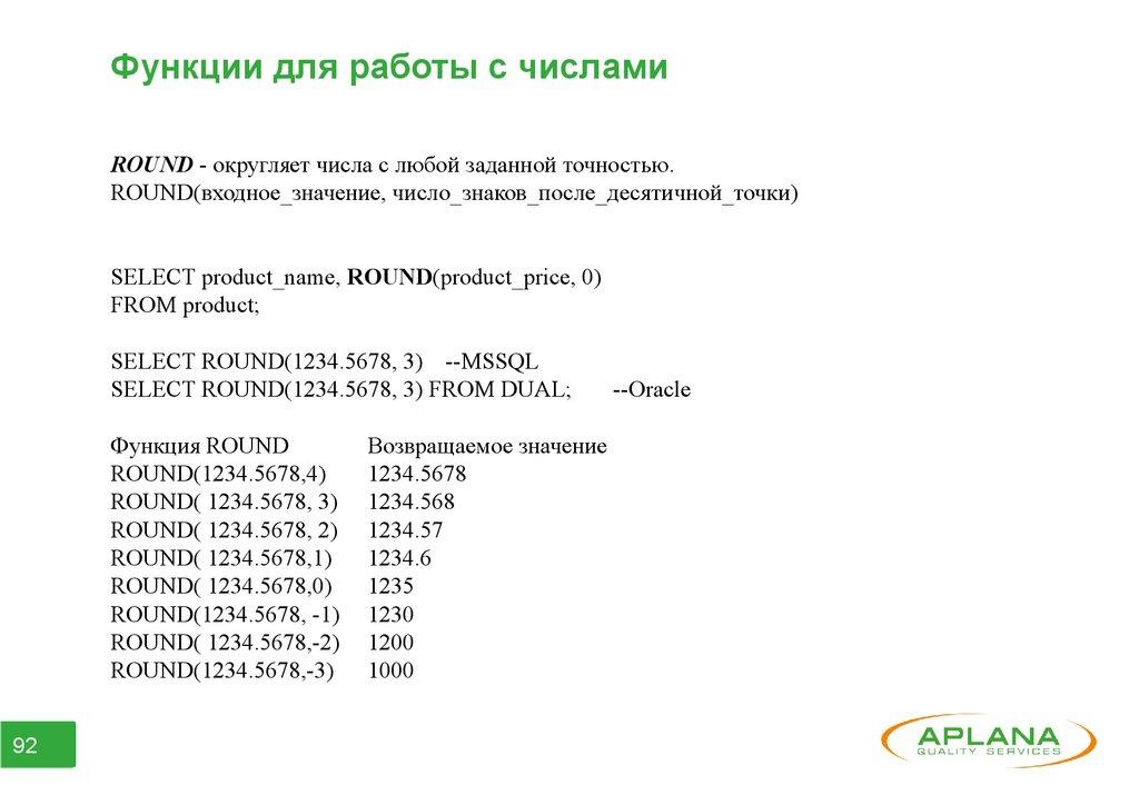 ● Часть 8. Функции для работы со строками, датами и числами.