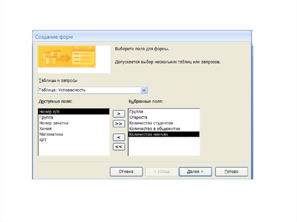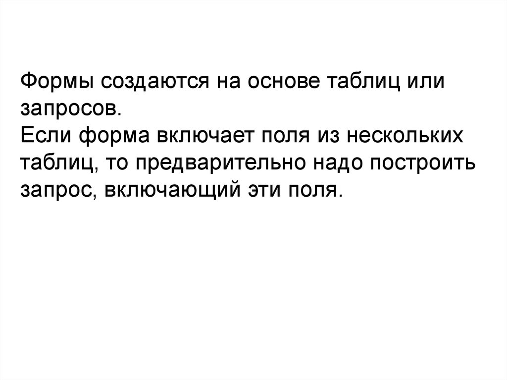 Формы создаются на основе таблиц илизапросов.